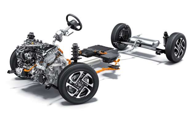 The different possibility is a series-parallel hybrid that’s good for 28.8 km/l. The setup consists of a M15A-FXE 1.5 litre Atkinson-cycle three-potter that makes 91 PS (90 hp) at 5,500 rpm and 120 Nm from 3,800 to 4,800 rpm. Like the Yaris Hybrid, there’s an eCVT and a electrical motor, the latter drawing energy from a 6.5-Ah battery situated below the car flooring to supply 80 PS (79 hp or 59 kW) and 141 Nm.