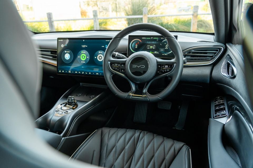 The most vital change with that abroad replace is a brand new steering wheel. Imagery reveals it’s a lot bulkier and premium-looking, eliminating a budget plastic centre pad and gloss-black buttons seen on our tester, whereas remaining in line with the remainder of BYD’s vary.