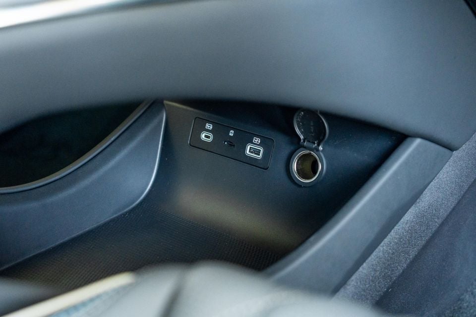 There’s no approach to regulate any of that both, as pulling on the inviting-looking deal with on prime of the seat simply releases the latch to fold it flat. Mind you, unusual second-row ergonomics aren’t new for Chinese automobiles, and not less than you get a mushy fold-down armrest with cupholders, and USB-A and -C ports behind a flap on the again of the centre console.