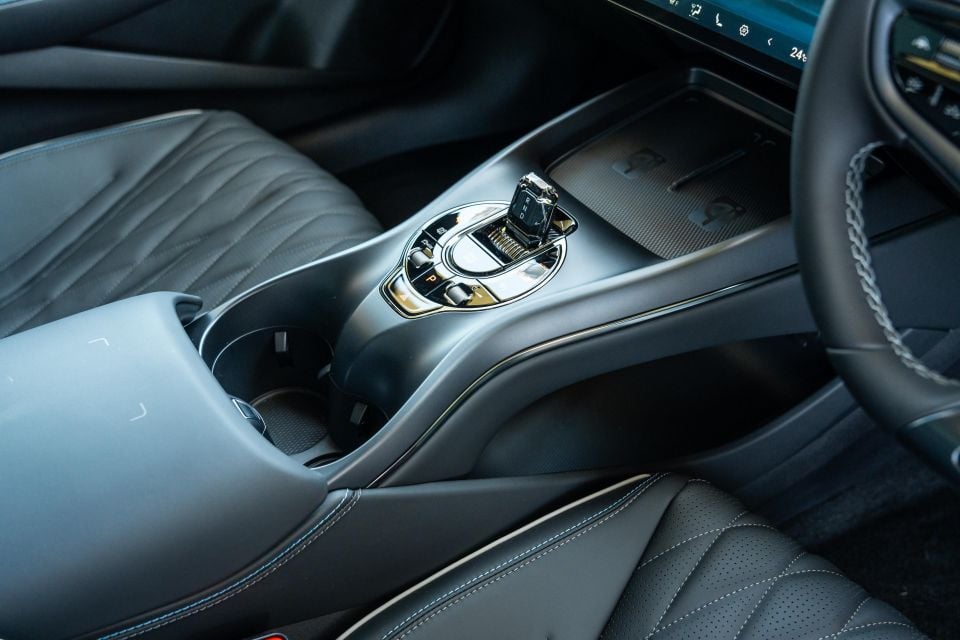 As for storage, entrance passengers are properly catered for. There’s a sizeable tray beneath the centre console with USB-A and -C ports, a 12V outlet, and an SD card slot, which properly hides small baggage, or telephones when you don’t wish to use the twin wi-fi chargers above.