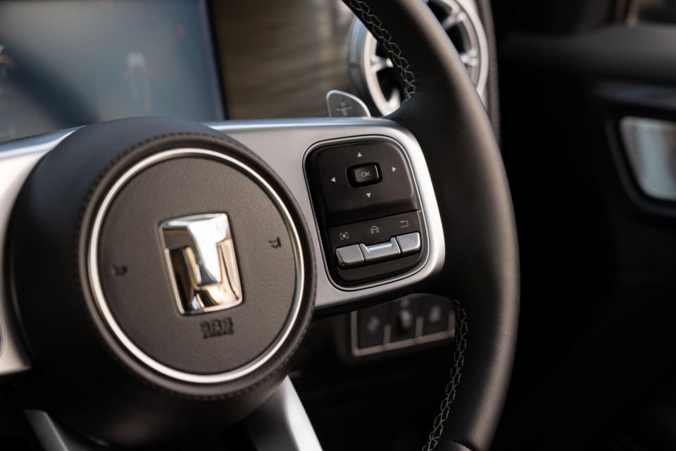 Ahead of the motive force is an enormous steering wheel which is befitting of a automotive like this. It seems to be chunky with the thick spokes, however it doesn’t really feel too giant to carry because of the thinner outer rim. It affords loads of tilt and attain adjustment, which suggests folks of many alternative sizes and statures will have the ability to discover a comfy driving place.