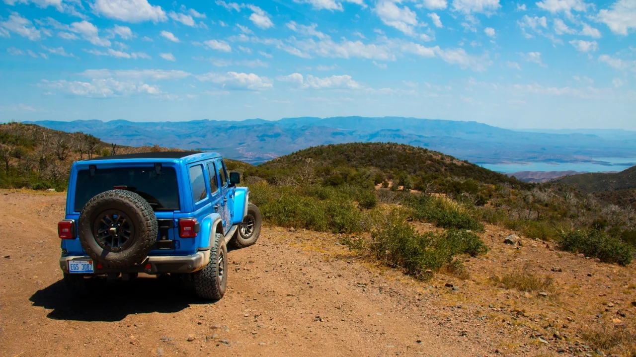 For higher traction and throttle management, I muscled the switch case lever into 4LO and began the ascent up the principle path. The larger we climbed, the extra beautiful the views had been—and the additional we stored going. The thought of going again down to search out an impediment that might finally fail to problem the Rubicon 392’s grip and floor clearance turned much less and fewer interesting. All I needed to do was go larger. Luckily, Brad and Chris felt the identical approach. At one level, we reached a pull-off space that gave us an unforgettable view of Roosevelt Lake. By the time we rotated to return down, we had been roughly 5,800 ft up.