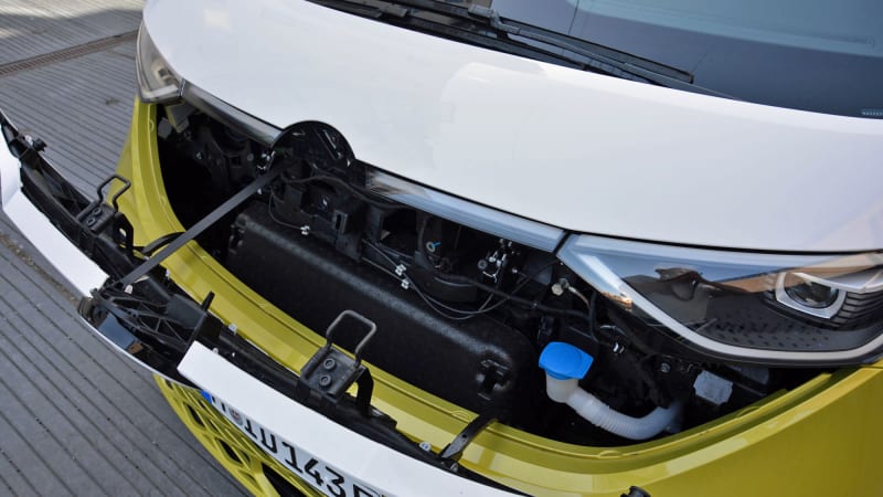 From a packaging standpoint, one of many downsides to the Buzz’s air-cooled predecessors was the engine placement. It was rear-mounted and consequently took up a substantial amount of house within the cabin. In the Buzz, the loading ground is totally flat and 87.8 inches lengthy with the second-row seats folded; that’s sufficiently big to sleep in. Don’t search for a frunk, although: the panel that the large Volkswagen emblem is mounted on flips right down to reveal an enormous piece of Styrofoam, numerous cables, and the washer fluid filler. Volkswagen defined including a frunk was potential however it could have made the entrance overhang longer.