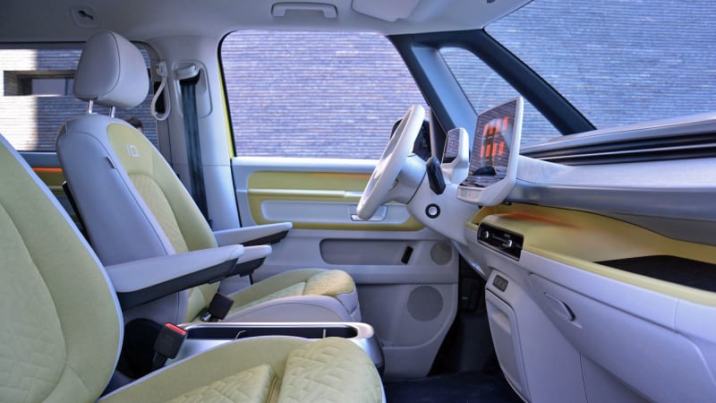 Looking past the retro-inspired swimsuit, the Buzz represents Volkswagen’s return to America’s minivan section. The cabin actually feels the half: it’s spacious, well-lit, and cleverly laid out. Sitting excessive, the driving force faces a three-spoke steering wheel, a 5.3-inch digital instrument cluster borrowed from the ID.4, and an enormous dashboard with horizontal trim that augments the sense of width. The acquainted, usually disliked infotainment system is displayed on both a 10- or a 12-inch touchscreen relying on the configuration and the floating middle console clears up house between the middle stack and the entrance seats. You can slide from the driving force’s seat to the passenger’s seat even in case you don’t have the pliability of an Olympic gymnast. The construct high quality is fairly good general but it surely doesn’t take a lot poking and prodding to seek out onerous plastics.