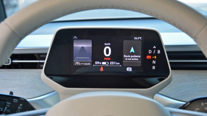Using a car-derived platform makes the Buzz much less van-like to drive than you’d anticipate contemplating it appears just like the field it got here in. Volkswagen Commercial Vehicles developed the mannequin but it surely feels extra just like the ID.4 than just like the Transporter bought in a lot of world markets. It’s straightforward to drive even in crowded cities: the steering is easy and the Buzz gives roughly the identical turning radius because the a lot smaller Golf. Visibility is general wonderful, although the {hardware} that powers the digital driving aids (like adaptive cruise management) is oddly and distractingly built-in into the underside a part of the dashboard.