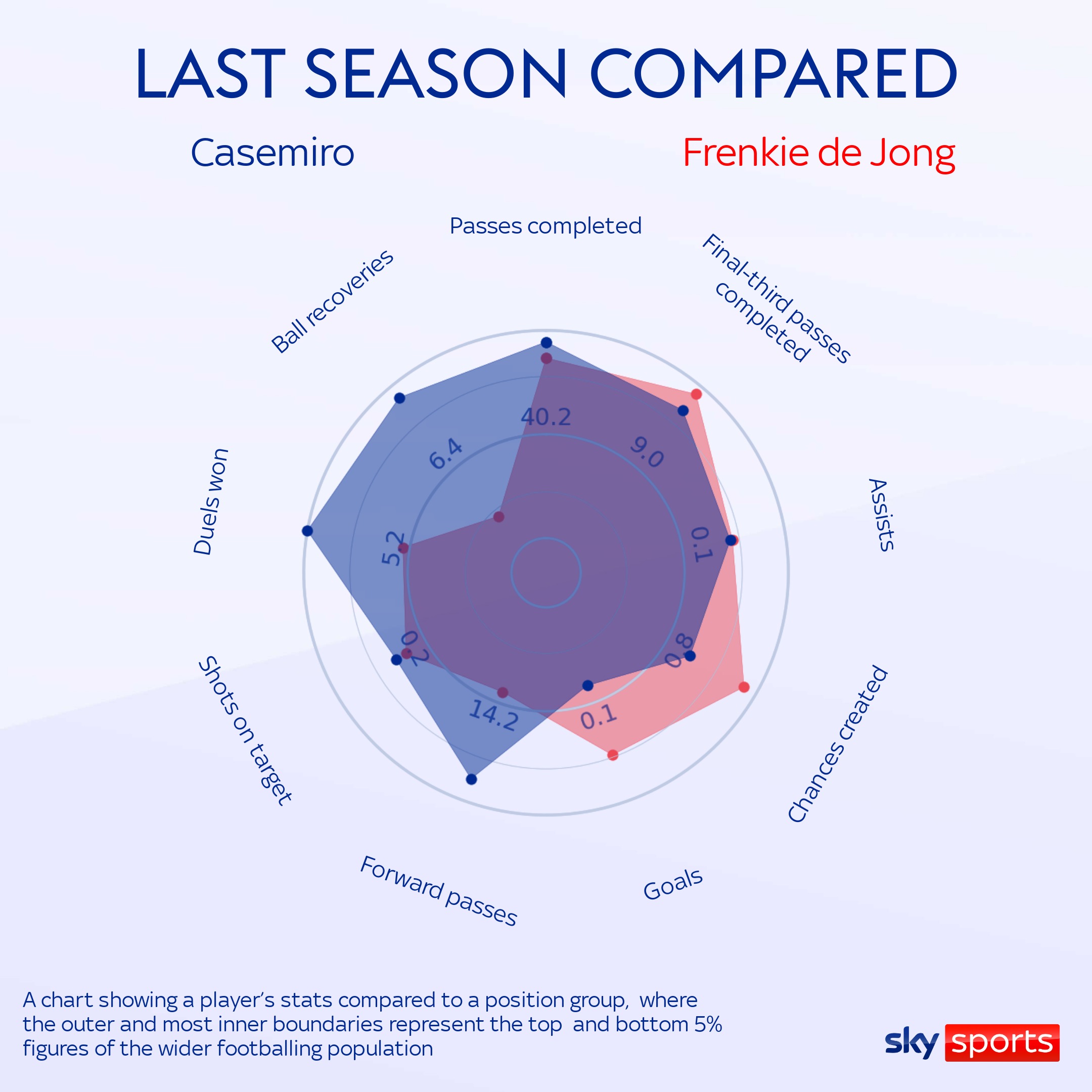 Manchester United have signed Casemiro for £70m and are reportedly nonetheless pursuing Barcelona midfielder Frenkie de Jong – however how do the 2 gamers differ?