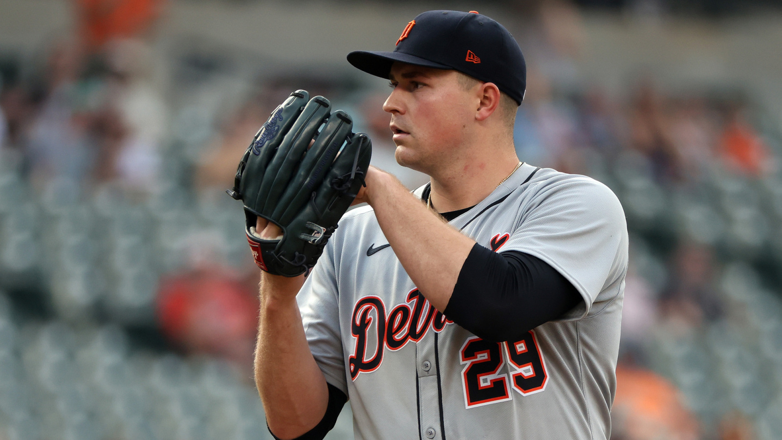 Detroit Tigers pitcher Tarik Skubal appears to be like on through the first inning in opposition to the Baltimore Orioles at Oriole Park at Camden Yards.