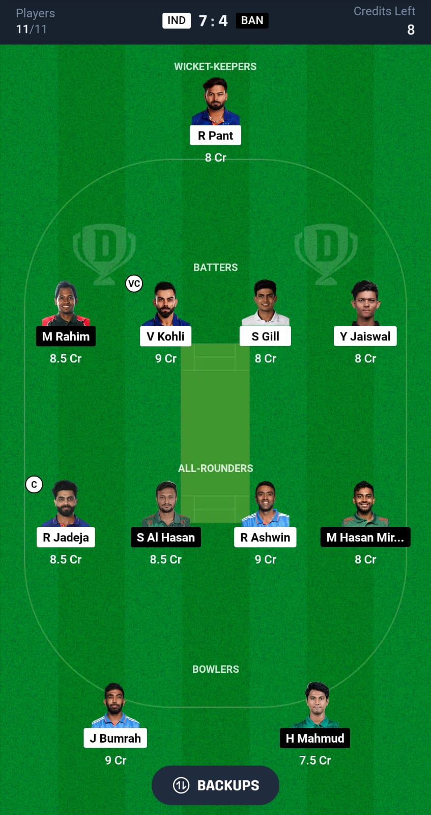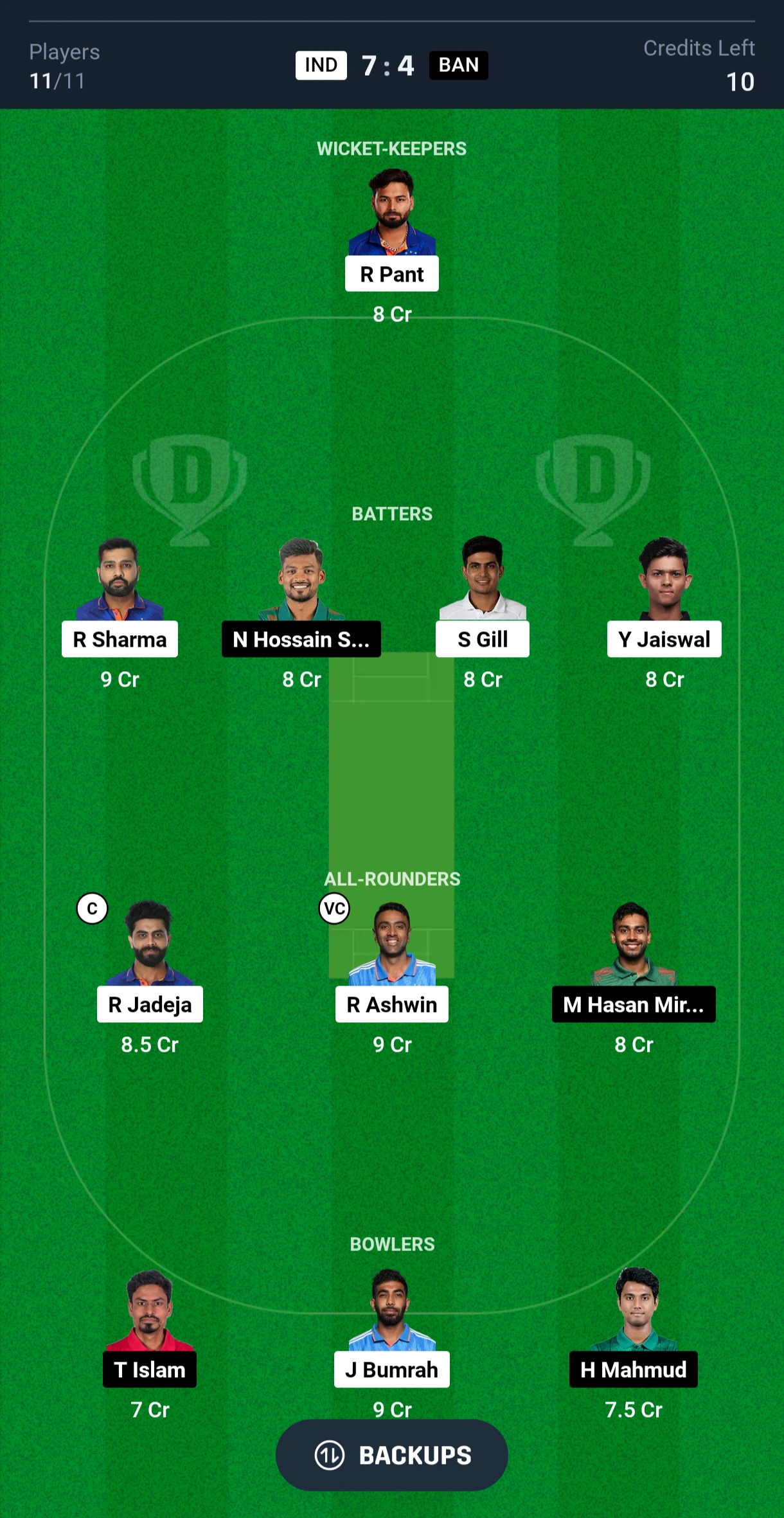 A plethora of options to choose from! Can you drop Kohli or Rohit, or will someone like Najmul Shanto draw another fifty? Ravichandran Ashwin bagged the most points (252) in the previous game, courtesy of his century and a six-wicket haul. Ravindra Jadeja also clinched 204 points, while Pant’s century saw him earn 195 points. For Bangladesh, Najmul Shanto claimed 151 points, making all these players almost undroppable in the second Test.