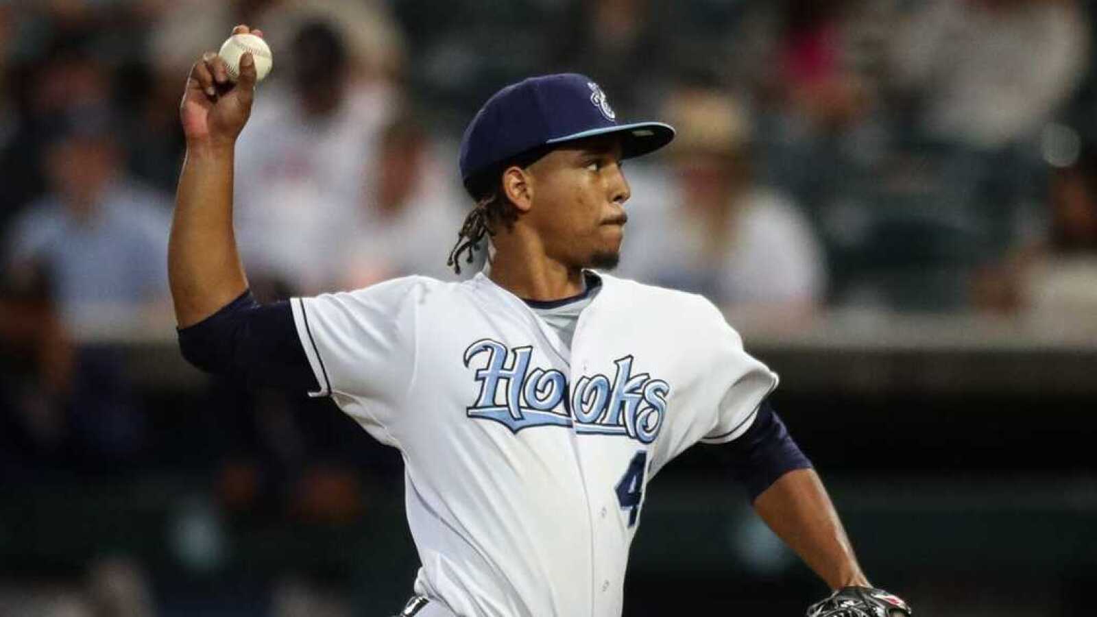 Astros minor league pitcher Miguel Ullola throws a pitch.
