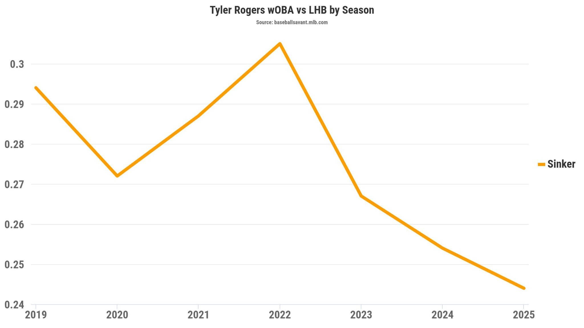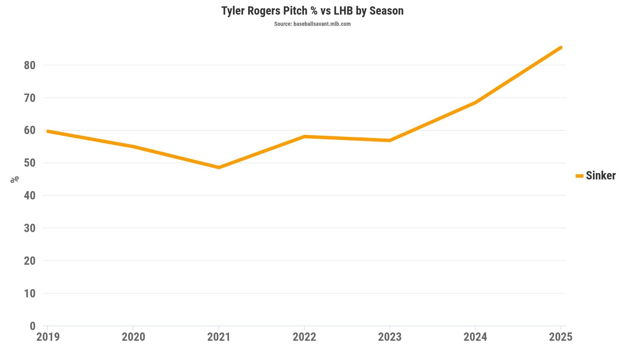 Over time, he’s develop into increasingly sinker-heavy in opposition to lefties, they usually don’t appear to have a solution for it.