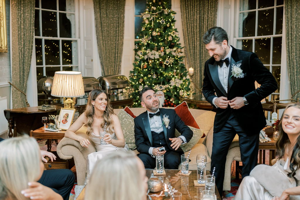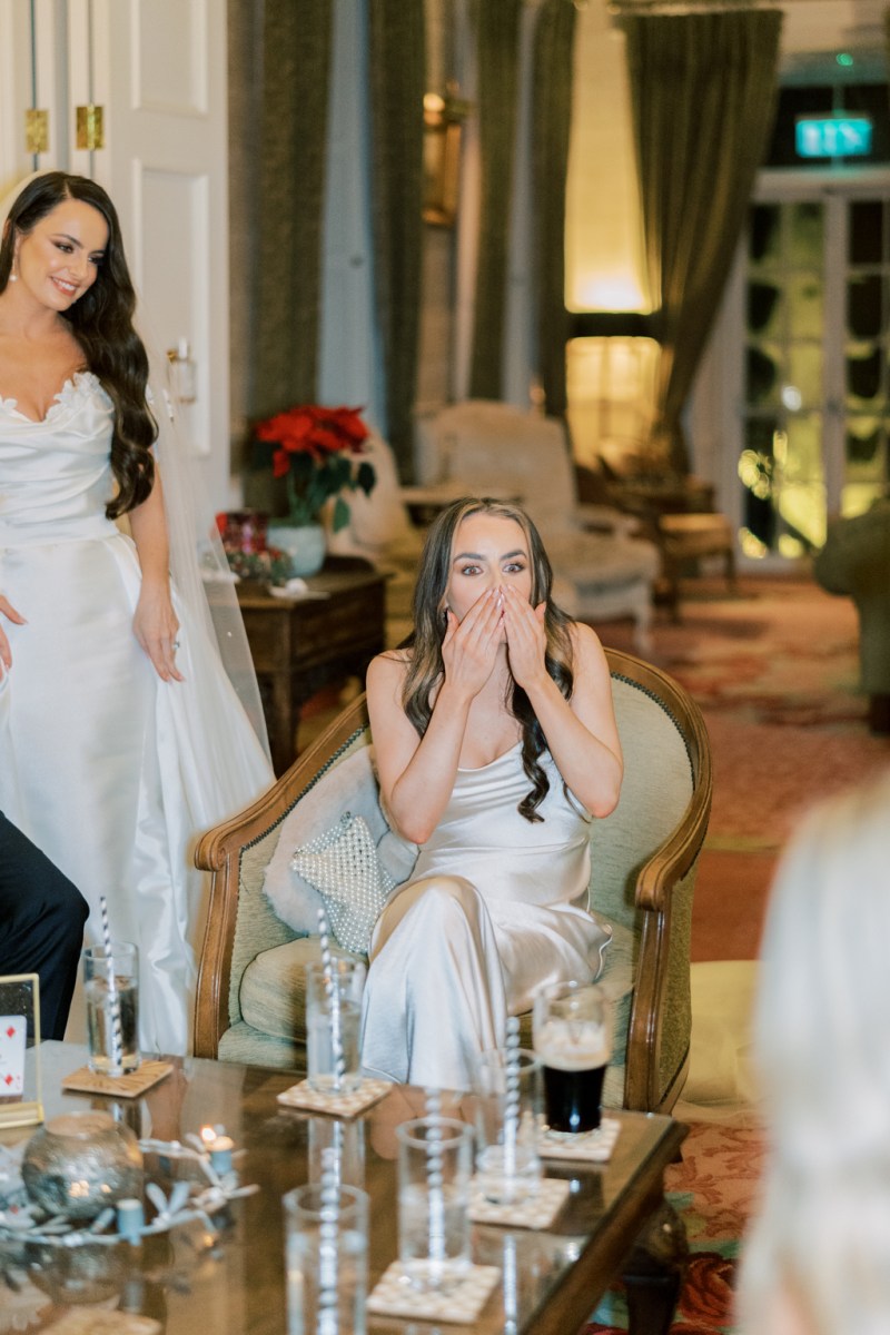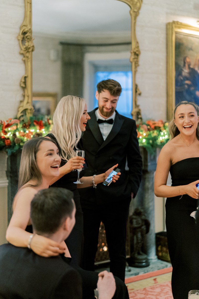 The halls within the decadent Irish fort had been absolutely decked out in festive splendour so their friends soaked up the magic of the season. With the flickering glow of firelight and scrumptious mulled wine welcoming friends and the lavish rooms dressed with vibrant wreaths and sumptuous Christmas timber, the history-steeped venue was a beguiling backdrop to their special occasion.