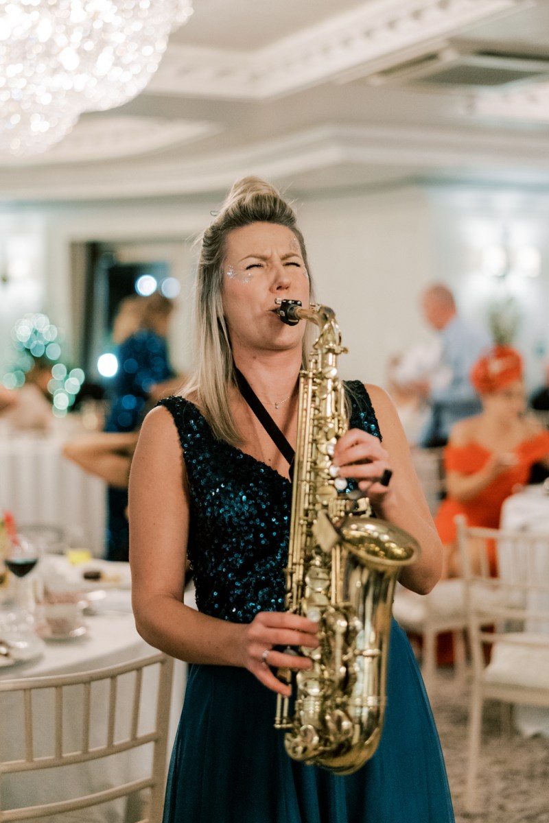 “If you can, a bit of casual entertainment at your reception goes down very well and also maybe some music after the meal (before the band starts), this gets the crowd going after such a big meal.” The couple had all bases coated with a sensational saxophonist bringing the occasion ambiance whereas a magician left friends enthralled with head-scratching tips.