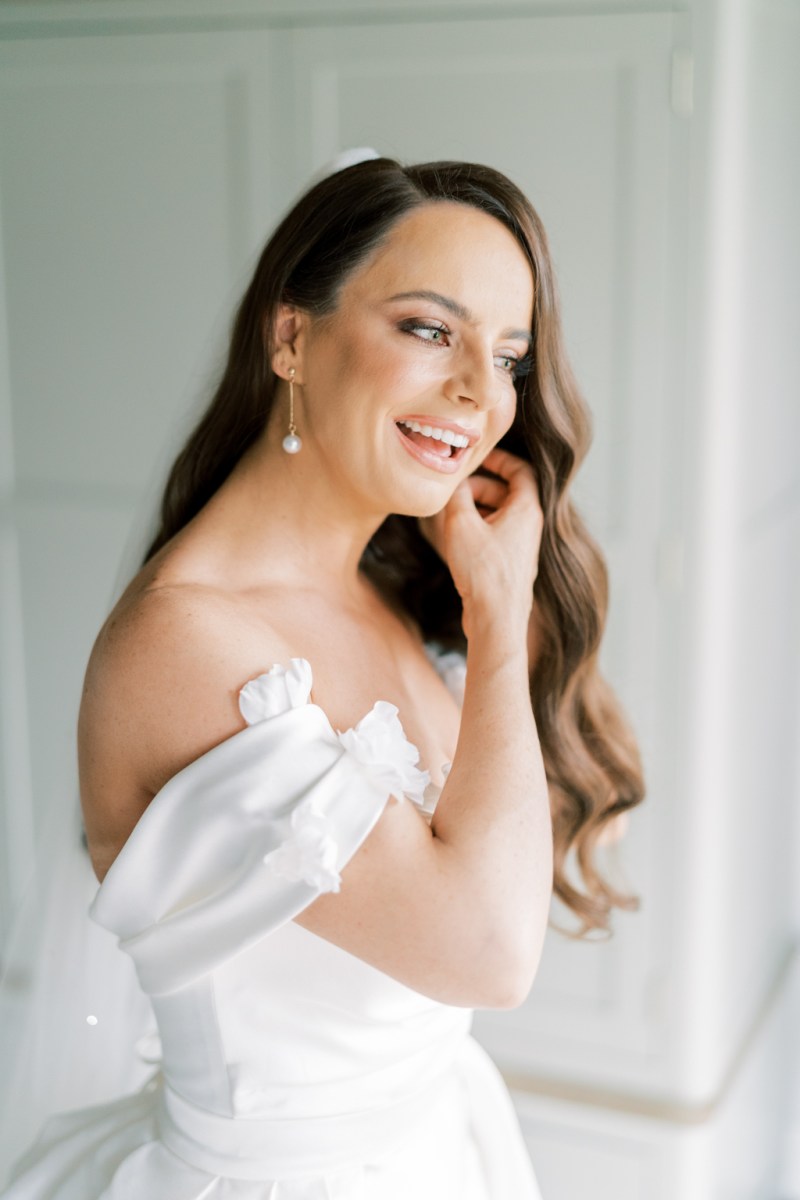Keava appeared completely phenomenal in her lustrous mikado off the shoulder Milla Nova marriage ceremony robe which had beautiful 3D floral embroidery on the sleeves and a princess practice. She accessorised to perfection with pearl drop earrings, a diaphanous lengthy veil and she or he additionally wore Louboutin footwear, choosing crystal-encrusted stilettos that are adored by brides all all over the world.