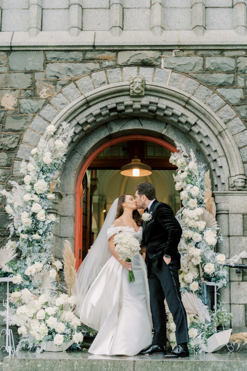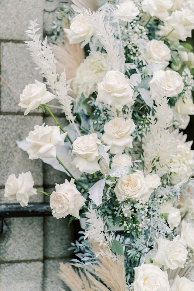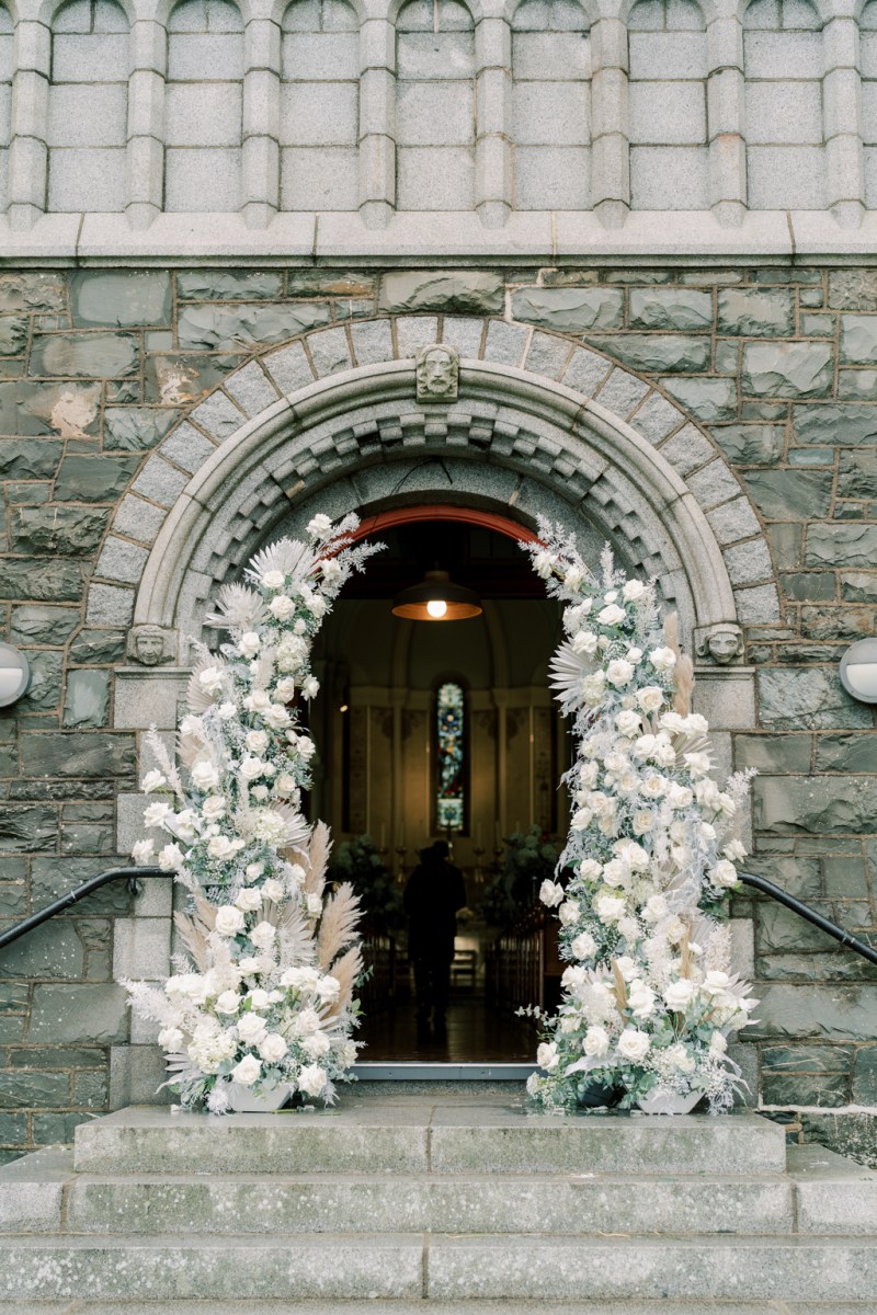 200 friends attended their beautiful nuptials and the world of romance started on the church doorway as white roses and different delicate white flowers evoked the enchantment of snow-dappled surroundings whereas fluffy pampas grass introduced a summery twist.