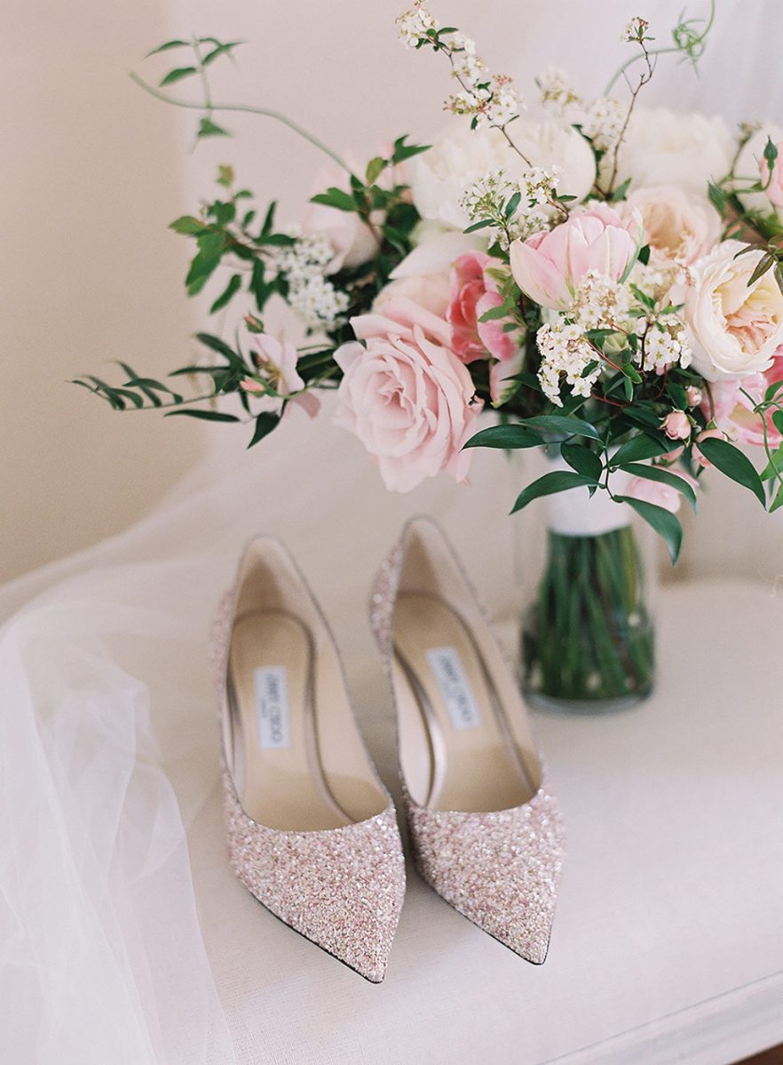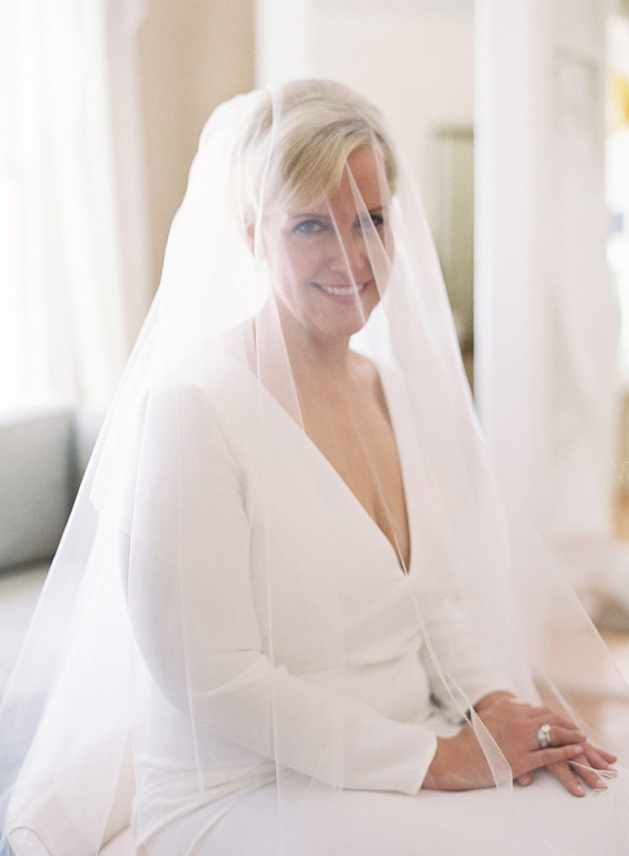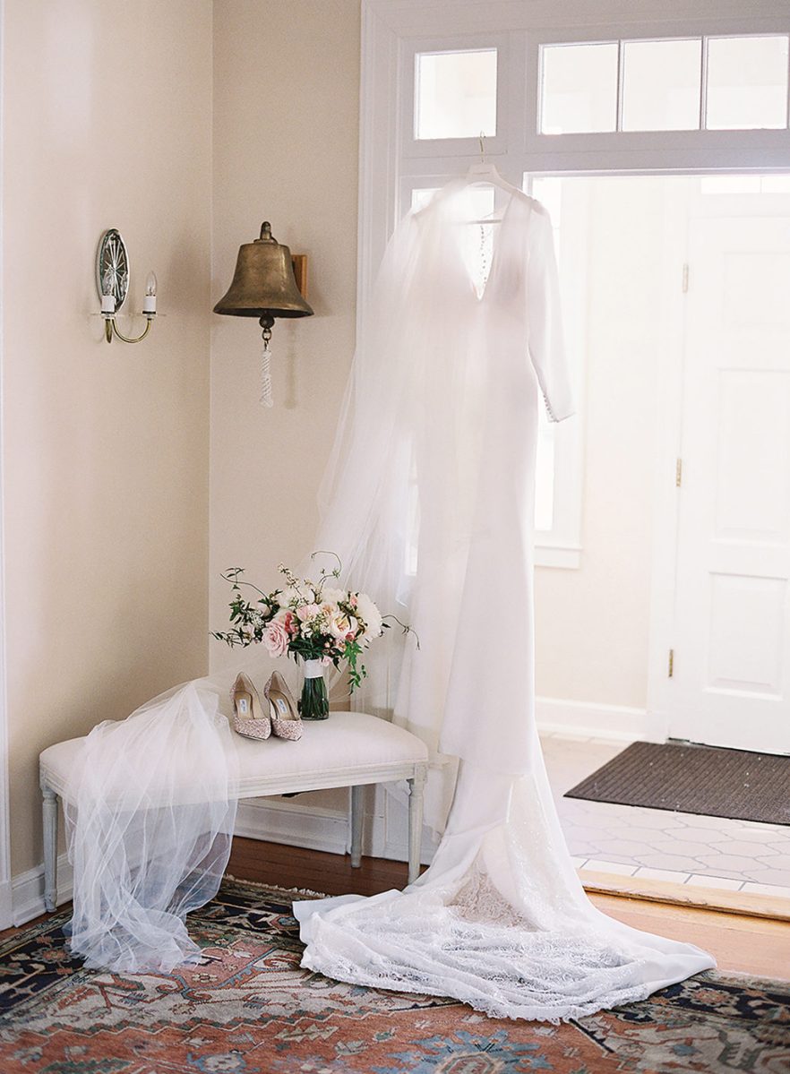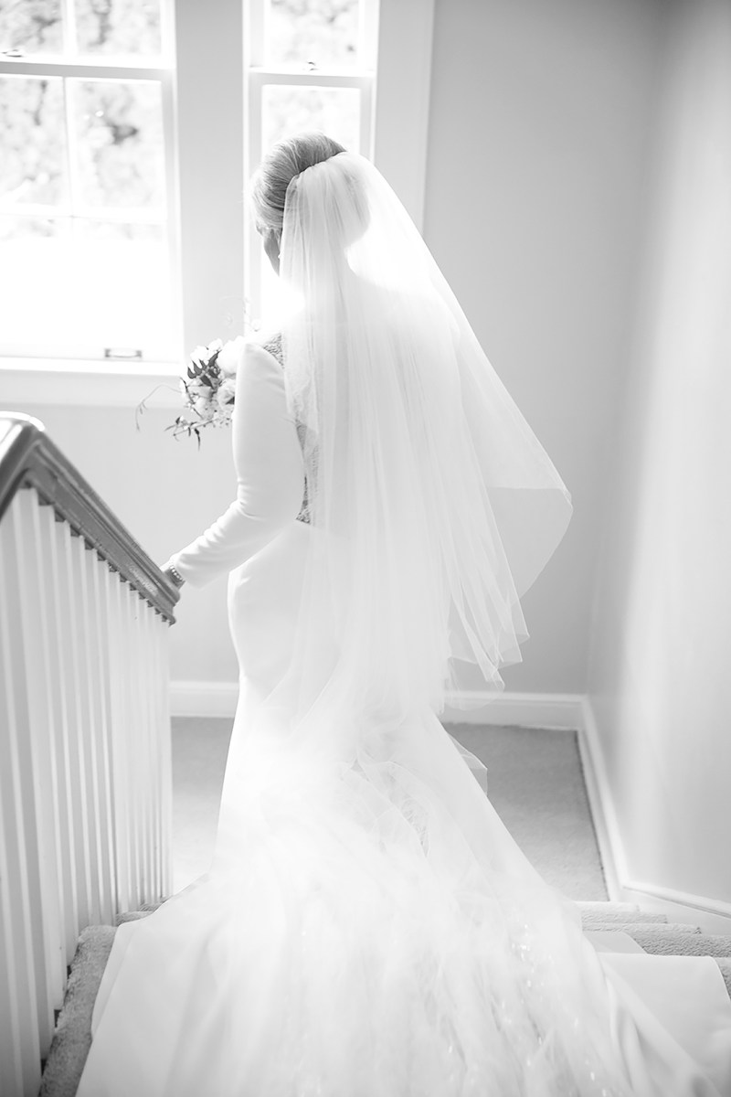 Ginger’s completely beautiful robe is by The Dress Theory which she paired with a gentle, full-lenght veil, sparkly Jimmy Choos and heirloom jewels.