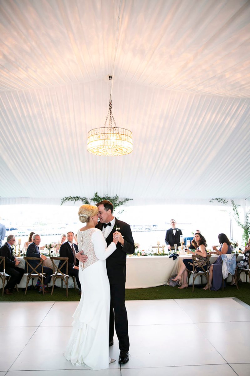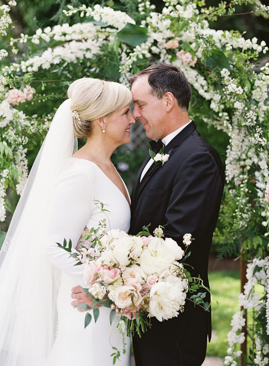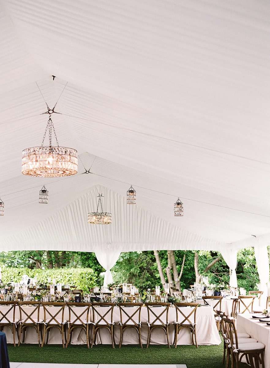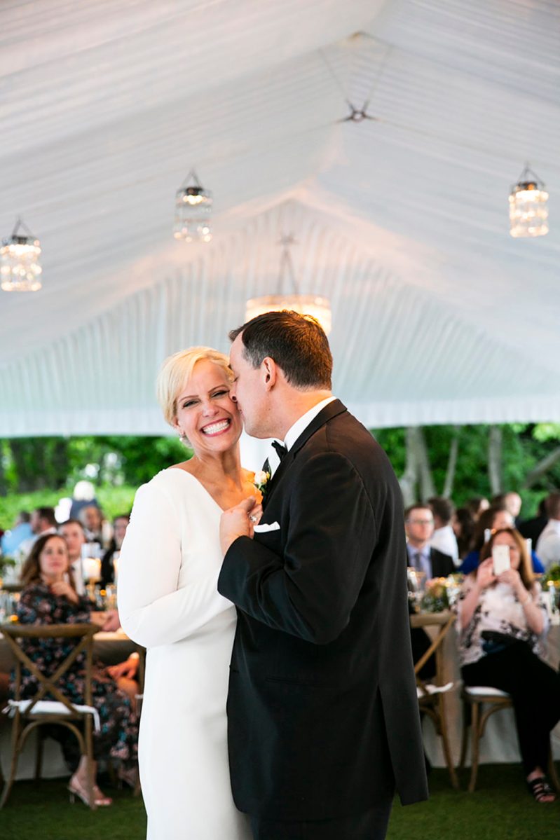 The reception befell beneath a ravishing tent, and the floral design group at Flora Nova Design designed a ravishing garden-style vibe with reduce florals, and greenery, whereas a classy all-white cake by Honey Crumb Cake Studio accomplished the design.