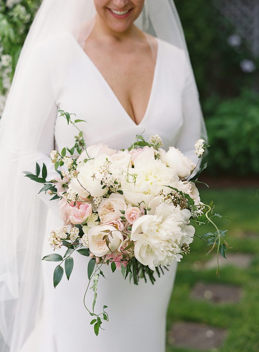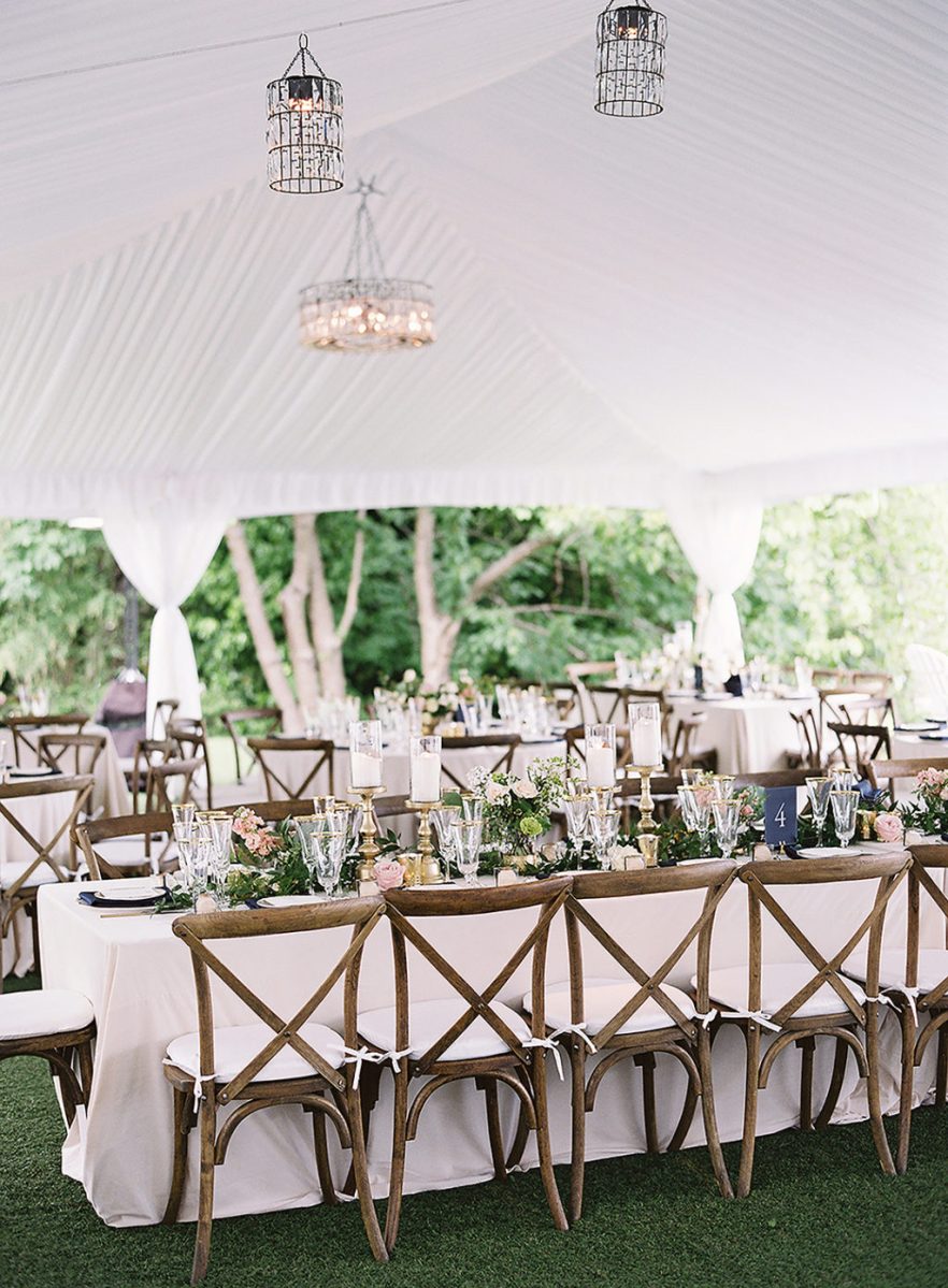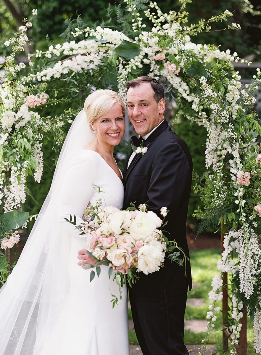 The reception befell beneath a ravishing tent, and the floral design group at Flora Nova Design designed a ravishing garden-style vibe with reduce florals, and greenery, whereas a classy all-white cake by Honey Crumb Cake Studio accomplished the design.