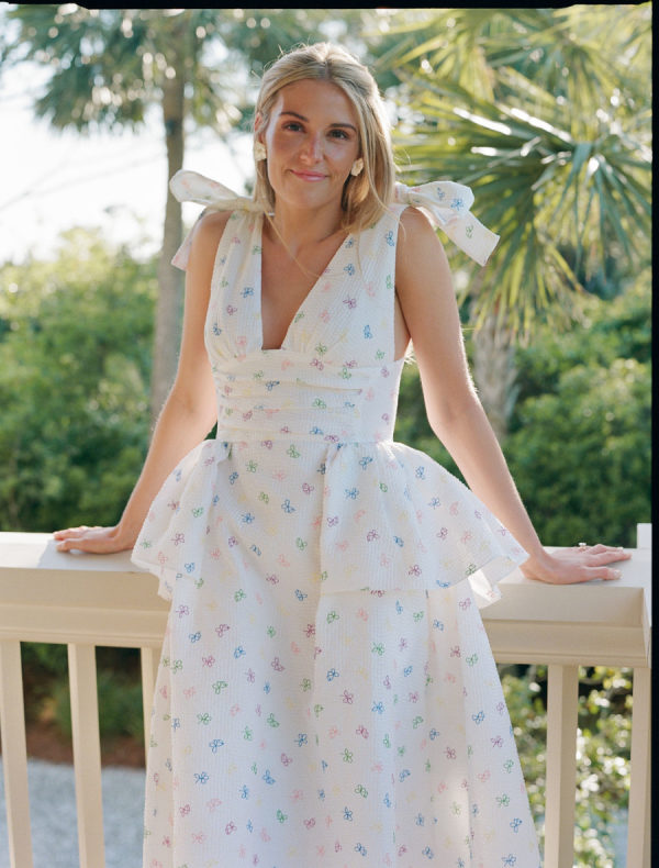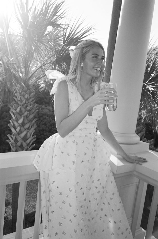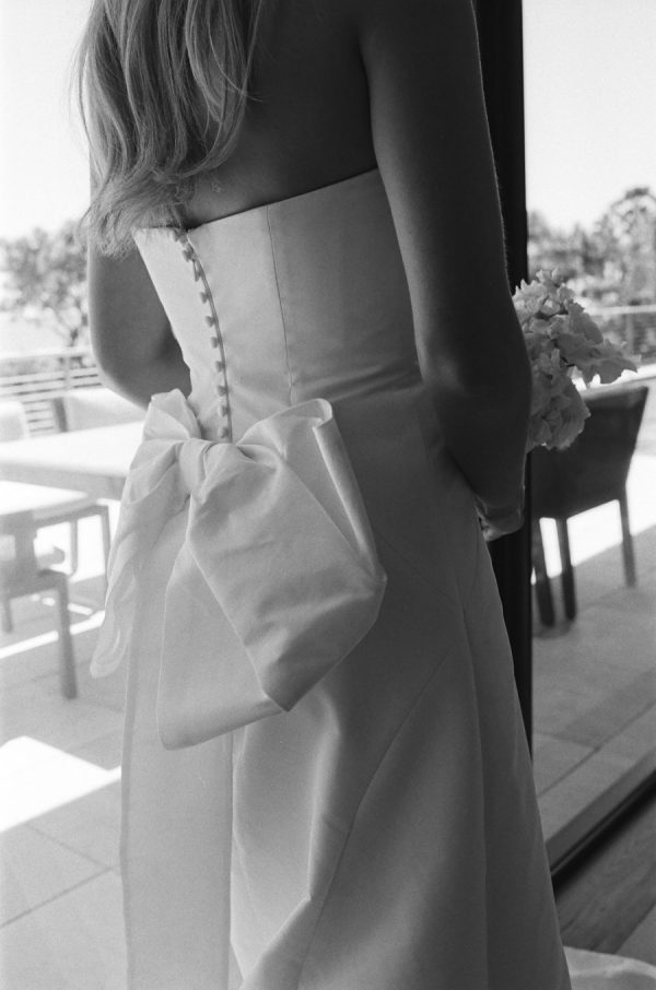 [field title=”Wedding Gown”]For the welcome occasion, a semi-vintage midi gown by Rosie Assoulin was the very first thing the bride sourced shortly after getting engaged. “I had my eye on this dress for years, and I couldn’t believe how lucky I was to find one, new with tags, in my size!”