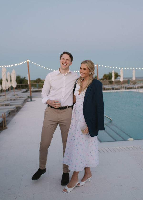 Guests loved contemporary oysters and handed hors d’oeuvres throughout cocktail hour earlier than transitioning to a plated dinner ‘al fresco’. Beneath the twinkling lights and an ideal sundown, friends had been served a primary course of fried inexperienced tomatoes, a South Carolina staple, with discipline pea salad. A seasonal tomato gazpacho with chive créme fraiche served because the palate cleanser between the programs. For dinner, there was a number of pepper-seared filet mignon with roasted potatoes and sautéed spinach or a pan-roasted rooster breast with carrots and wild mushroom risotto. Wedding cake, chocolate-covered strawberries, and macarons had been served on the dance flooring for dessert. The signature drinks included a mint mojito for the bride and a spicy margarita for the groom. A particular espresso martini recipe from a bar within the West Village was introduced out round ten o’clock, and was an enormous hit to maintain the after occasion going! At the after-party, which happened as a pool occasion within the bride’s household residence, late-night bites had been served.