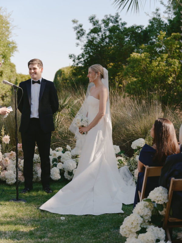 The bride initially envisioned a personal, intimate ceremony for her marriage ceremony, as she struggled with the considered studying her vows in entrance of a crowd. So, the couple determined to marry in a quiet, private ceremony on Nantucket the summer time prior, with the bride’s brother officiating the occasion. His phrases had been so heartfelt and significant that they each discovered themselves moved to tears. The feeling of studying their vows privately impressed them to share their vows aloud throughout their bigger marriage ceremony celebration on Kiawah Island the next April. The second, which had begun in personal, blossomed right into a public declaration of affection that felt much more profound and unforgettable in entrance of their household and buddies.