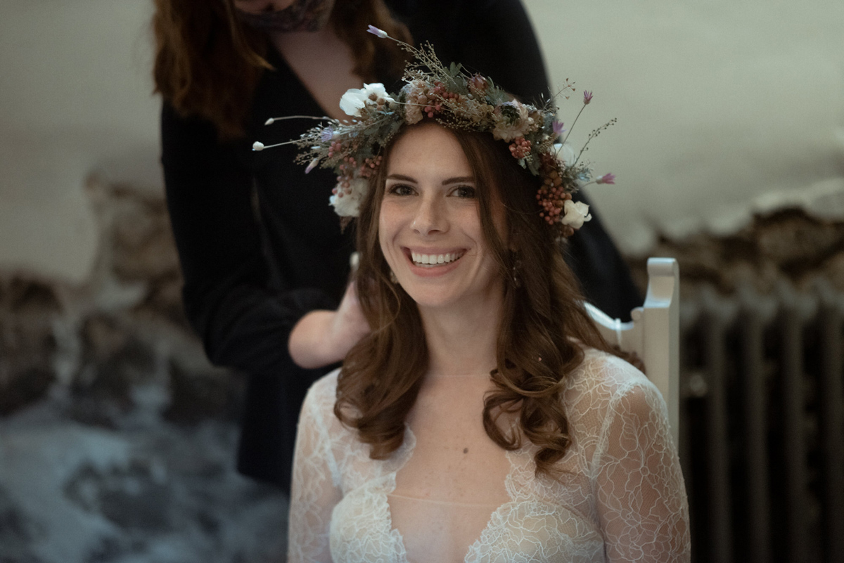 For the elopement, I wore previous beat up boots that had been my mother’s; these didn’t make it too lengthy in opposition to the moist terrain, so I then became my Danner mountain climbing boots for the remainder of the day. I additionally wore a floral crown made by the very proficient Barbara Smith at Wildflower Workshop.