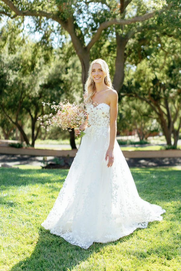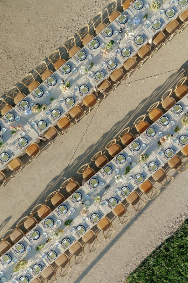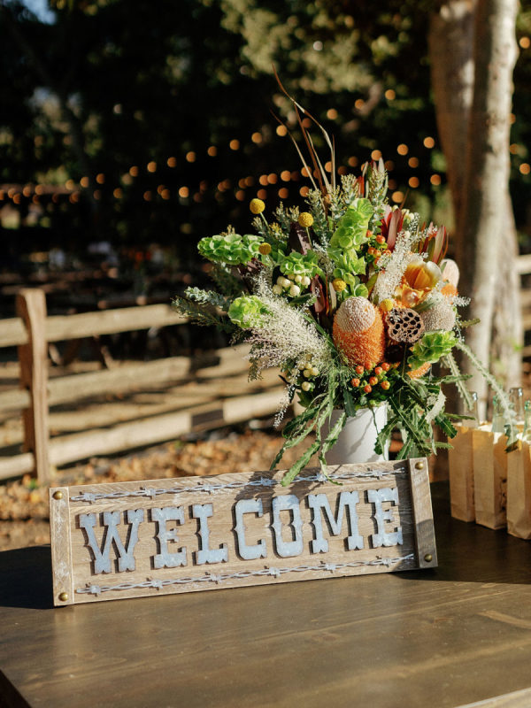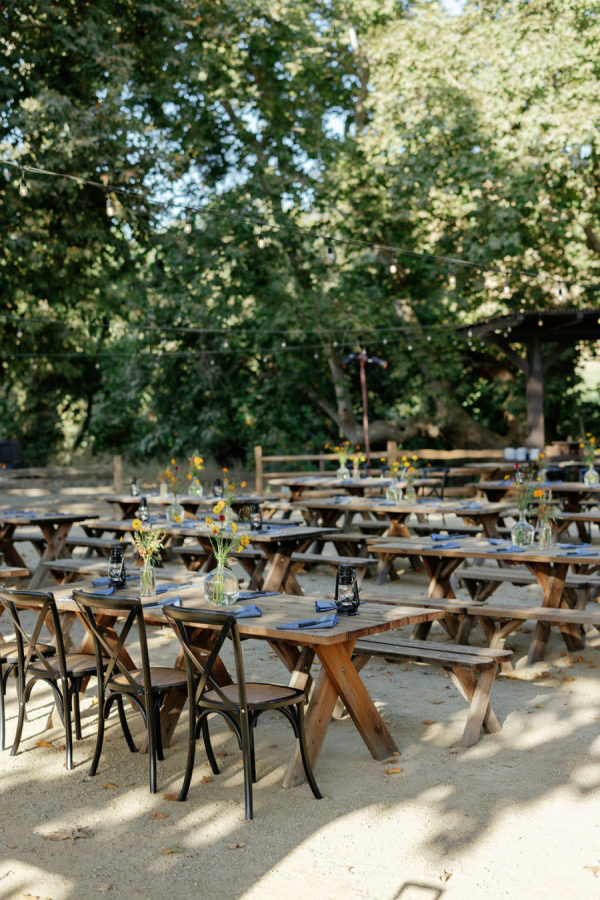 Abby and Bobby wished it to really feel elevated however by no means too severe, with pure textures, lush florals, and playful touches. ‘Because we have been surrounded by lovely vineyards and beautiful barns- we wished to play into the pure colours of the area, but additionally it nonetheless seems like summertime in September in Santa Yne, and so we wished to play right into a shiny and joyful aesthetic too, however whereas nonetheless leaning into the autumn with darkish blues and moss colours. We wished our wedding ceremony to be enjoyable and memorable, particularly since most of our friends have been from out of city. We emphasised good meals, good drinks, and good music. ‘