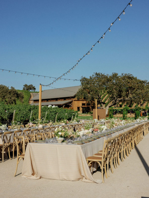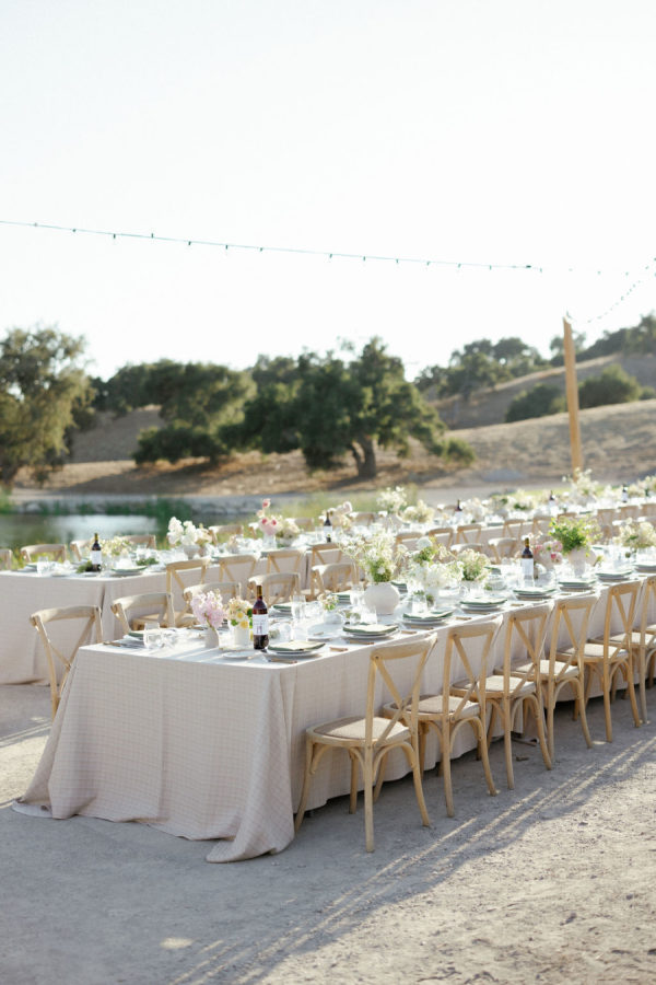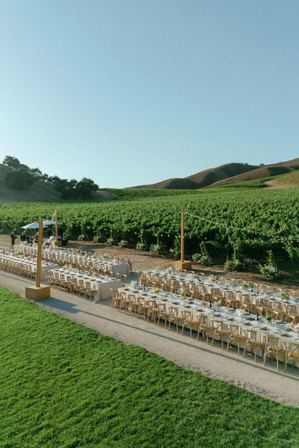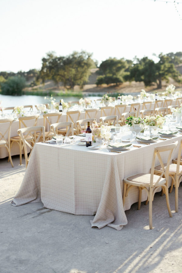 A heat, wine nation setting with a refined however festive aesthetic—enjoying into late summer time with touches of early fall. Earthy, natural neutrals with accents of contemporary greens, creamy whites, and comfortable pure tones. The setting itself (vineyards, oak timber, rolling hills, and water) gives a lot of the colour story, and the design selections lean into enhancing, not overpowering, the pure panorama. Bash, please, did essentially the most lovely job.