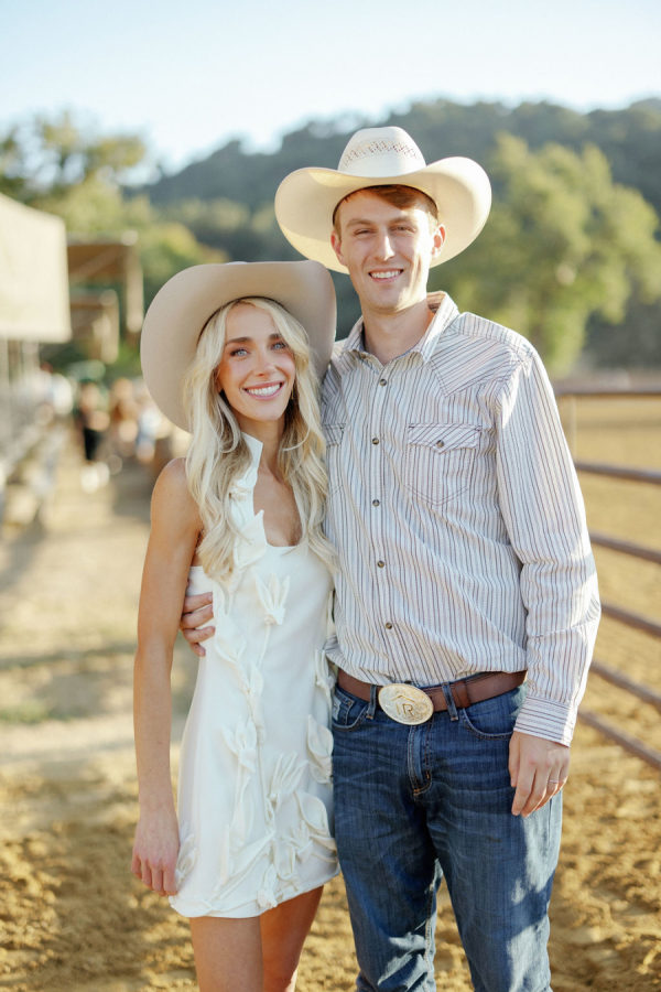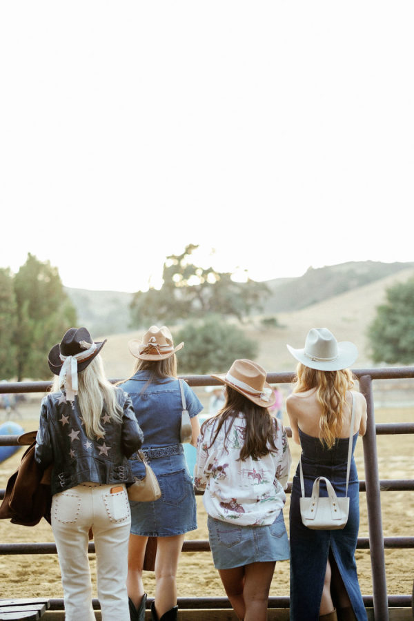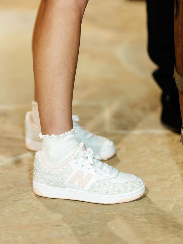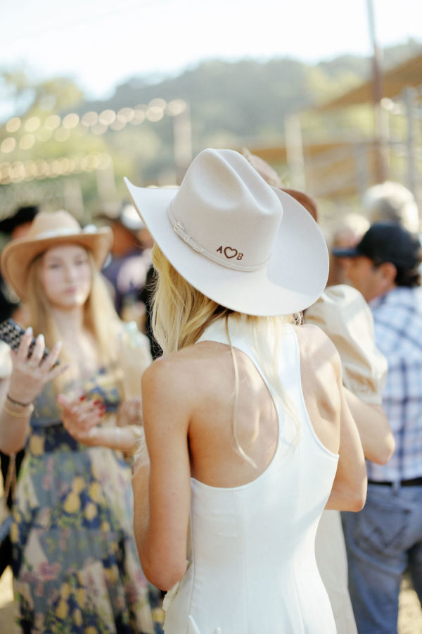 Fashion: Friday Welcome Rodeo: Cult Gaia “Ela” costume, Stetson hat, Tecovas boots, classic horseshoe earrings. After-Party: Nadine Merabi “Carrie” costume with customized pearl-embellished New Balance sneakers (a nod to her new final title, Nolan)