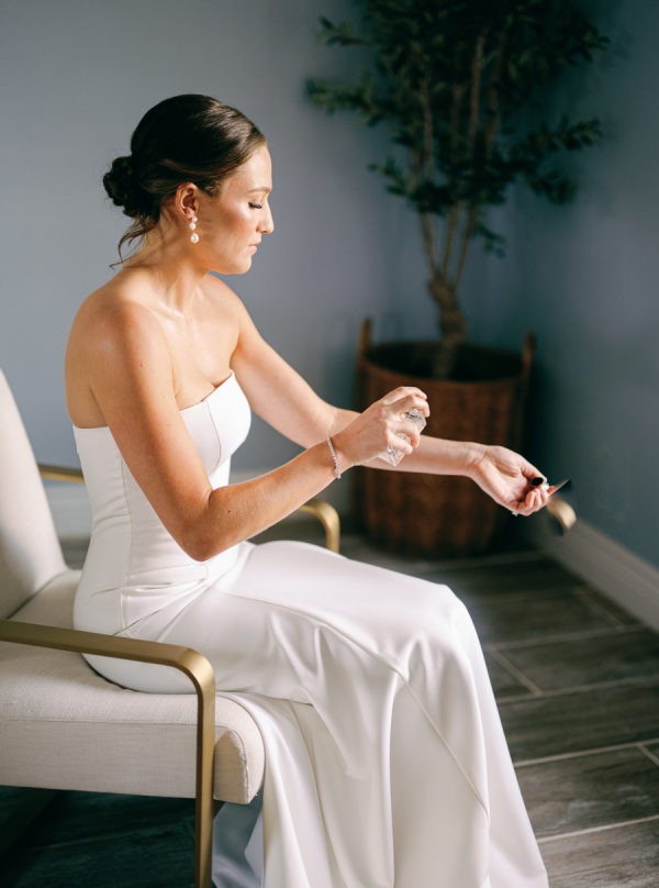 [field title=”Wedding Gown”]Courtney went with a chic and fashionable robe by Sarah Seven with a lovely neckline and deep leg slit so as to add a enjoyable flare.[/field]