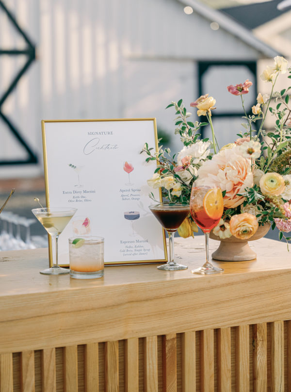 It was vital to Courtney and James to mix their lives collectively, bringing components from the groom’s New York East Coast roots, combined with the bride’s California Santa Cruz mountains West Coast upbringing. We discovered methods to mesh the 2 and infuse these components into the entire visitor experiences from meals and beverage to the reside band and the dance occasion. During cocktail hour, we had Hog Island Oyster Co. shucking oysters for visitors to take pleasure in, which was an extremely particular and nostalgic expertise for our bride, who has fond recollections along with her father having fun with Hog Island’s oysters all through the years. Guests have been capable of roam amongst the grounds and revel in some scrumptious meals stations and a few of the {couples} favourite drinks, together with additional soiled martinis and a refreshing aperol spritz.