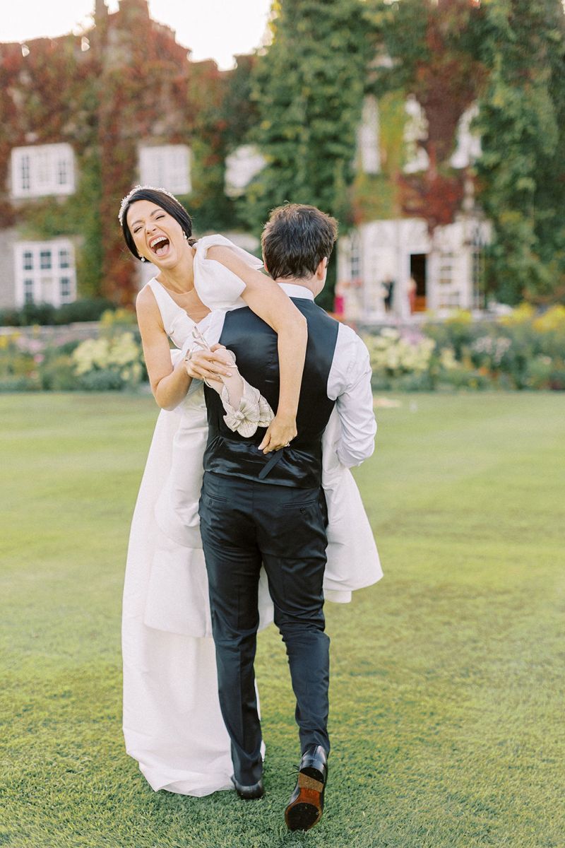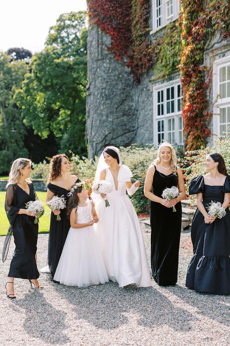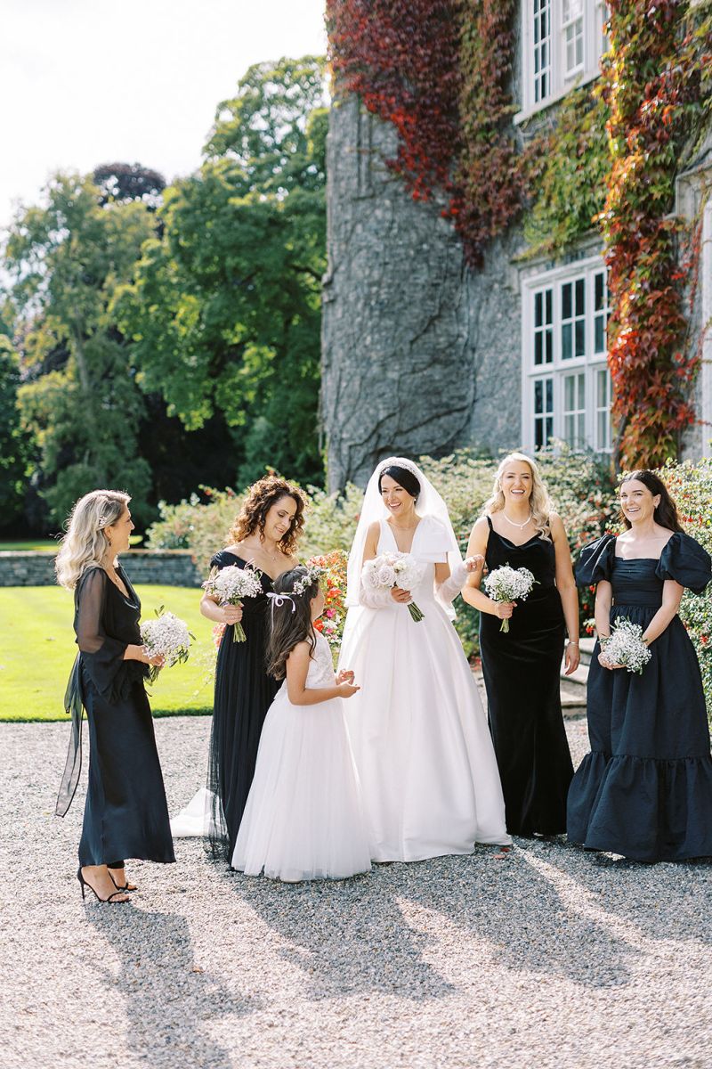 We are so in love with how her women embraced the combo and match bridesmaid costume development and so they seemed bewitching in black. “I told my bridesmaids to pick their favourite dress and designer and just keep with the colour theme of black-tie. It was so important to me that my girls felt their best and showcase their beauty in a style they were comfortable in.” They wore designs from Sinead Keary, Saks Fifth Avenue and Adrianna Papell.