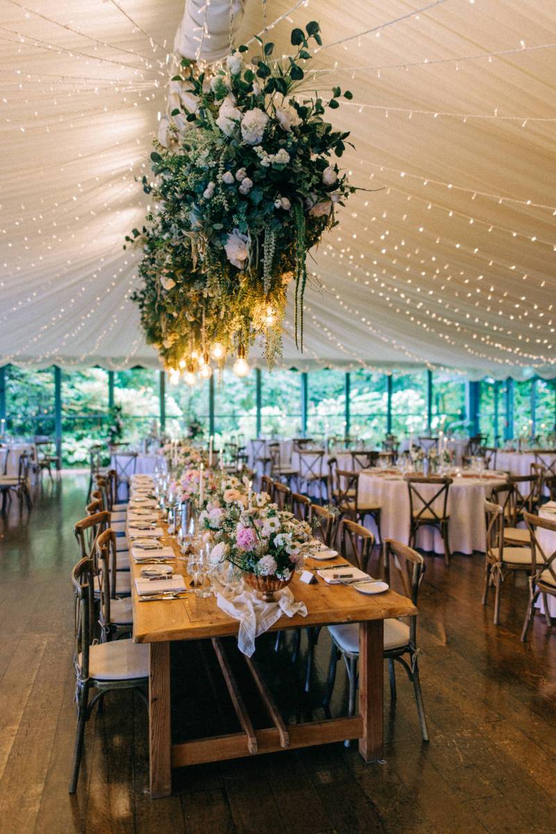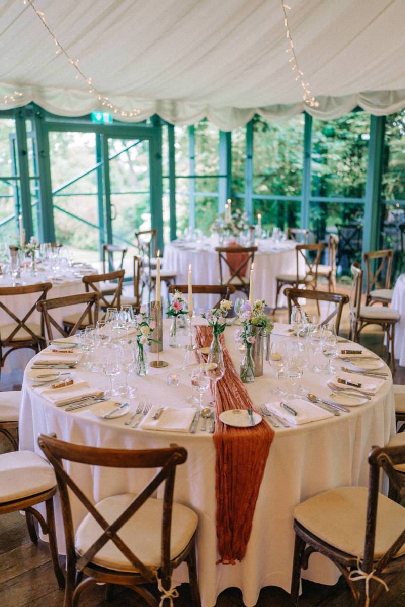 Their reception was a gently rustic affair as delicate shows of flowers in watercolour shades have been dotted into glass vases and burnt orange tablerunners have been included within the styling. A lush foliage and white floral show hung above the primary desk and glowing fairy lights solely added to the wow-worthiness of the area.