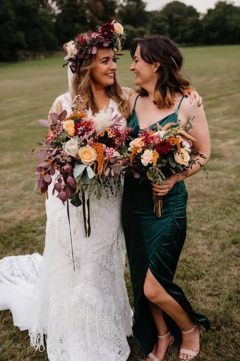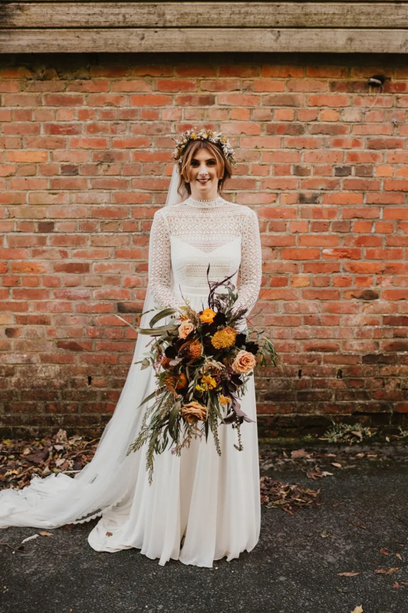 6. Wow, a flower crown match for a queen, and bouquets bursting with a sensational array of autumnal flowers in each shade, type and texture to match by The Secret Garden Flowers.