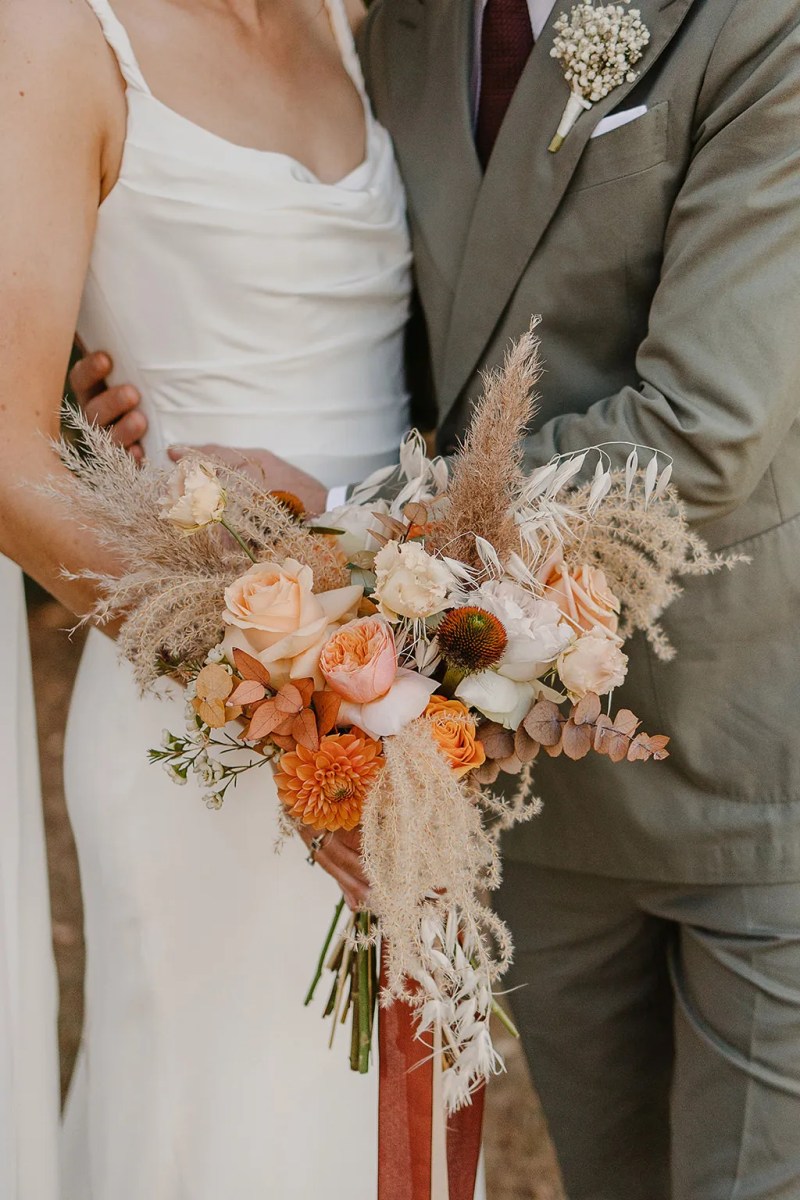 30. Featuring peach and orange roses, dahlias, ranunculous, waxflower and dried grasses, we’ll by no means tire of Seóna’s autumn marriage ceremony flower bouquet crafted by Mrs. Whiterose.