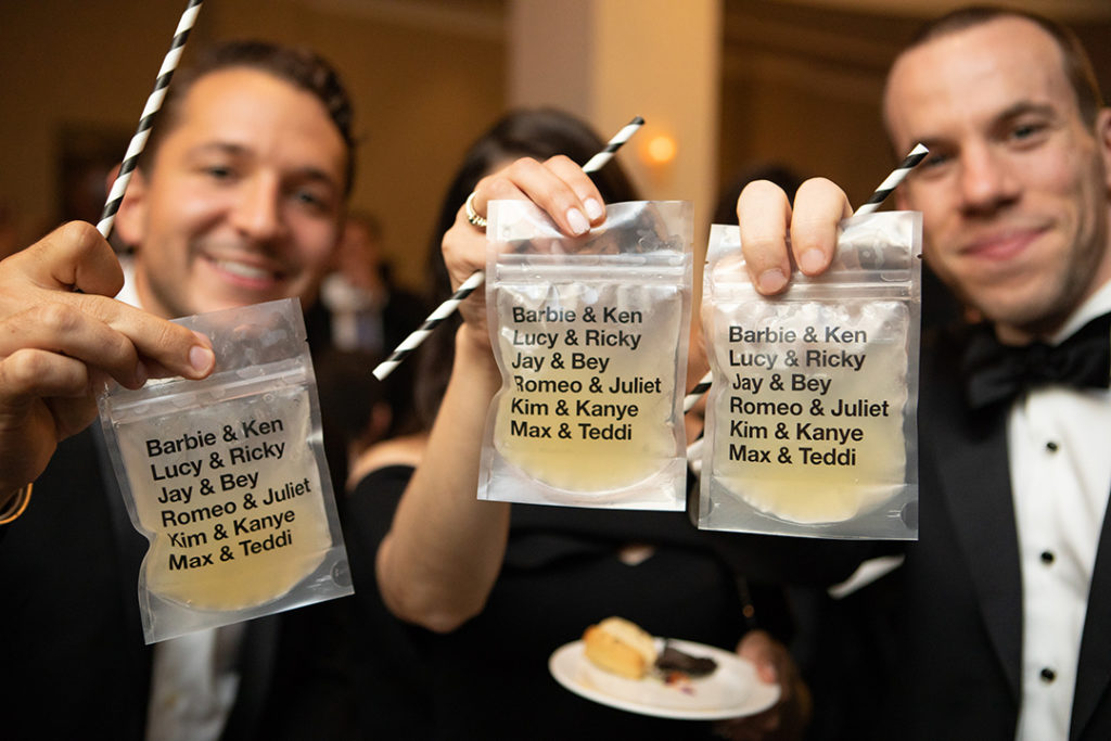 Proving inspiration can come from wherever, Max and Teddi’s wedding ceremony feel and look had been really impressed by one other resort the couple love, The Edition Hotel in Miami. “Crisp white, clear lucite and modern arrangements consisting of large Alocacia leaves, Calla Lilies and black and white accents. The Carrara marble was the perfect backdrop to all of our black and white accents including bridal party dresses. The grand stairway leading down to the ballroom was lined with hundreds of candles which set a romantic feeling. We wanted the room to feel more like a restaurant than a wedding – dim surround with pin lighting spotting modern mirrored tables.” Getting married in a grand, but subtle location allowed Max and Teddi to go fashionable and minimal with their decor, “Max and I are both very simple people and we wanted this to be displayed throughout our wedding,” says Teddi. “With the sleek marble, magnificent ceilings and grand chandelier located in the lobby which hangs down through to the grand ballroom we knew our vision of clean simplicity would come to life at the Ritz Carlton Philadelphia.” For Teddy, having a cohesive look throughout the marriage was vital, “We incorporated different versions of the word LOVE within our invitations, our logo, and different decorations such as our infamous doughnut wall. Tying this back to the Philly LOVE statue.”